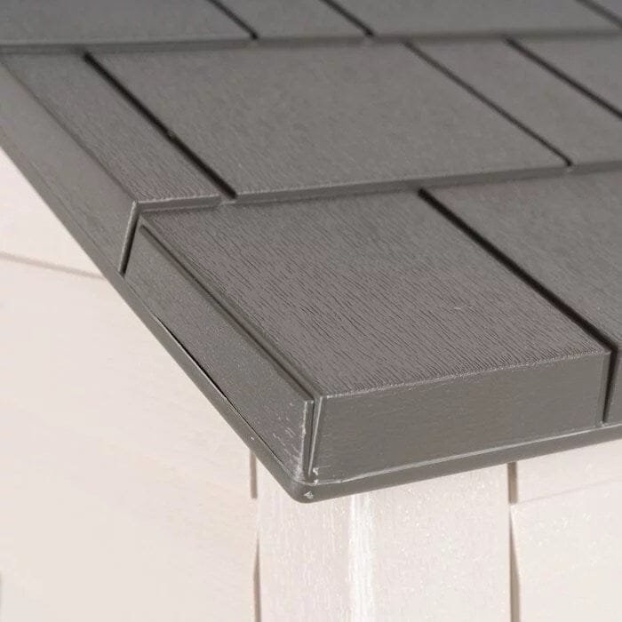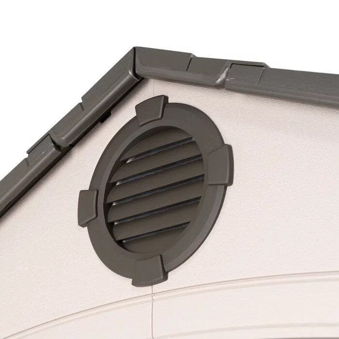 Shed TypeStorage ShedPrimary MaterialPlastic; MetalMaterial DetailsHigh-density polyethylene and steelPowder Coated FinishYesColorDesert Tan and Dark BrownStorage Capacity621 cubic feetFoundation RequiredYesFoundation IncludedNoRecommended Foundation Size94″w x 148″dFloor IncludedYesImpact Resistant FlooringYesFloor MaterialPlastic/PolyethyleneWindows IncludedYesNumber of Windows2Functional WindowsYesWindow Lock IncludedYesBuilt-In Shelving IncludedYesNumber of Shelves5Ventilation IncludedYesShingles IncludedNoSkylight IncludedYesFlower Box IncludedNoNumber of Doors2Door StyleDouble DoorPadlock Compatible DoorsYesYear-Round UseYesWind Rating65Weather ResistantYesFire ResistantYesWater-ResistantYesUV ResistantYesRot ResistantYesRust ResistantYesMildew ResistantYesImportedYesAssembly
