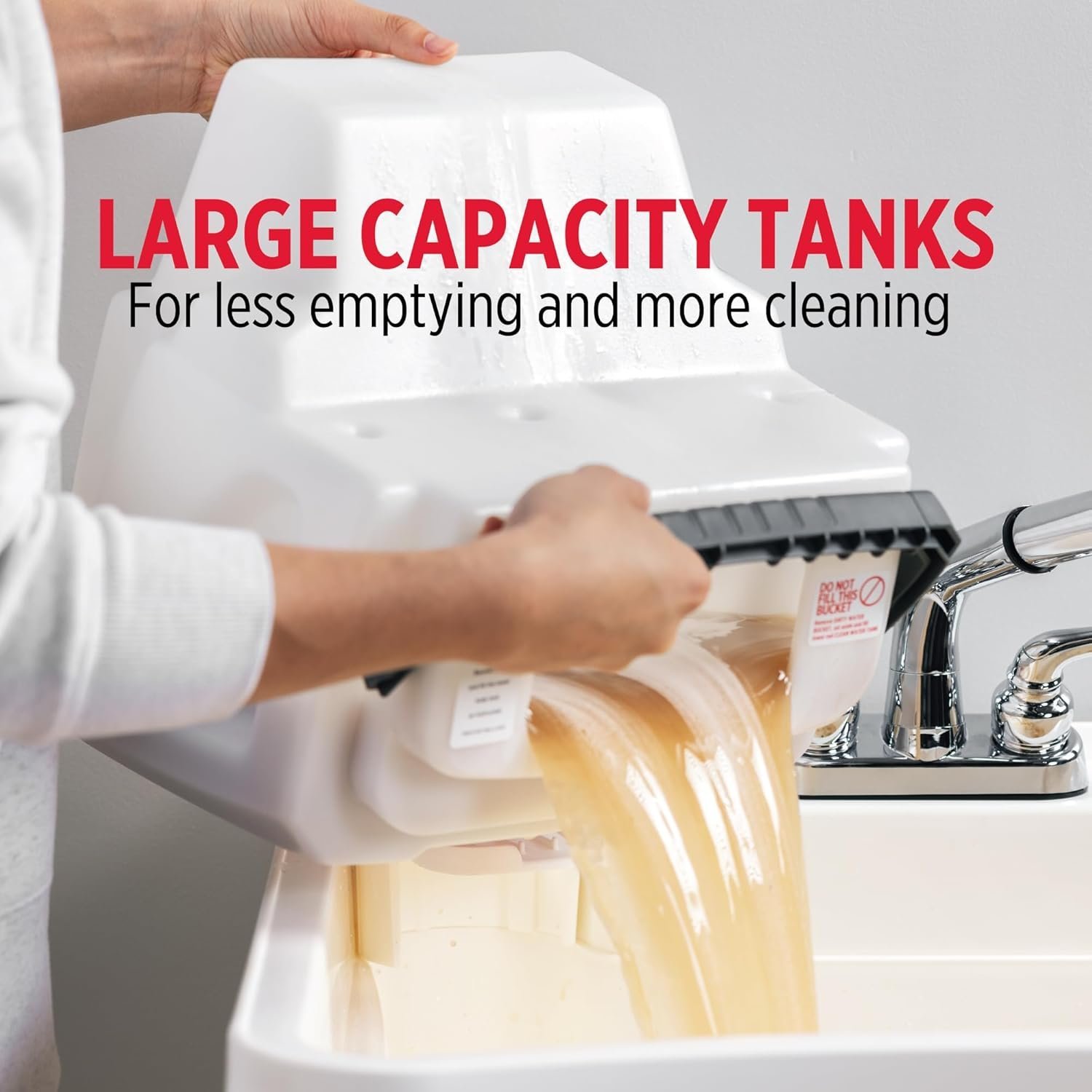 - LARGE-CAPACITY TANKS: This Rug Doctor Carpet Cleaner features a large 2.5-gallon clean water tank and a 4-gallon dirty water tank for more active cleaning time with less filling and emptying. 1-Year Limited Consumer and Commercial Warranty.