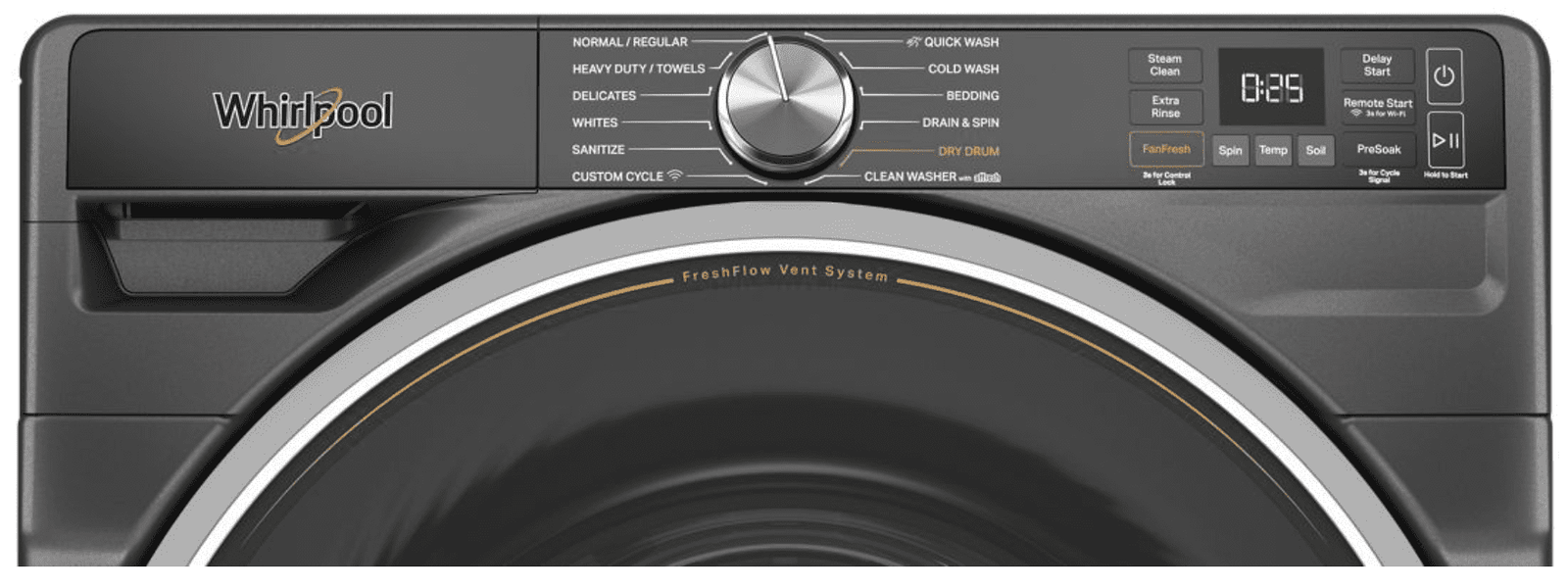 - FreshFlow™ Vent System: Fan-powered system with antimicrobial gasket keeps washer fresh.
